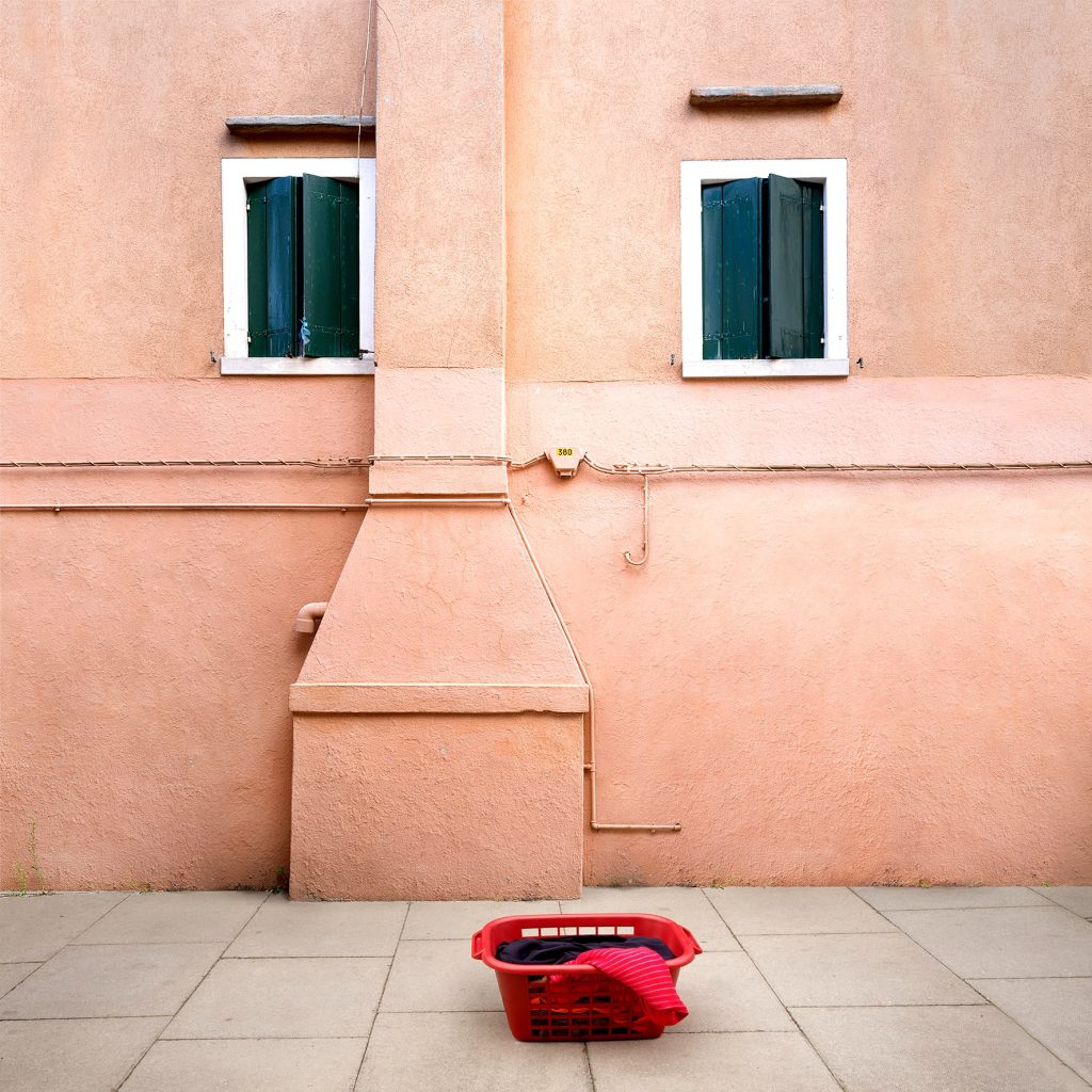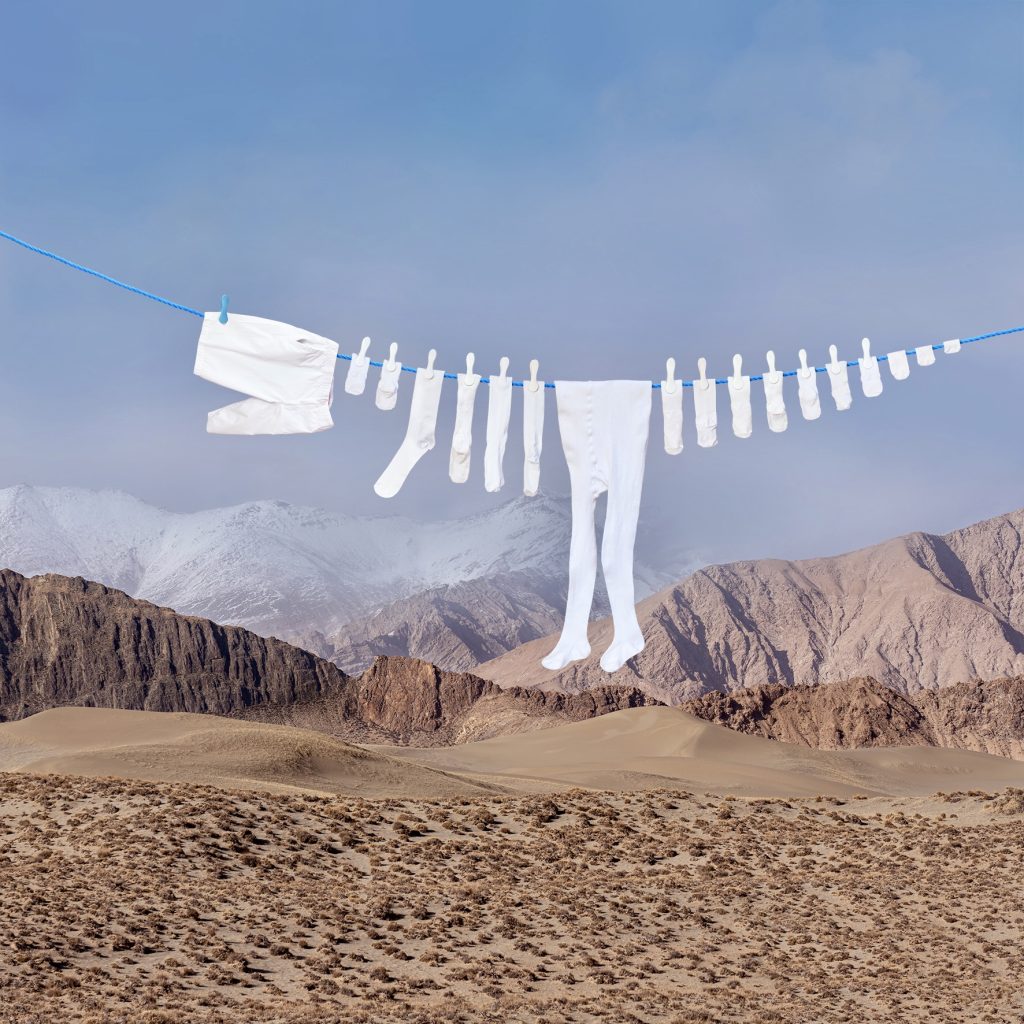 - Hue is kept familiar and domestic. Soft whites, washed-out pastels, denim blues, gentle pinks: colours that belong to everyday laundry. This familiarity lowers the viewer’s guard and creates immediate comfort and recognition.